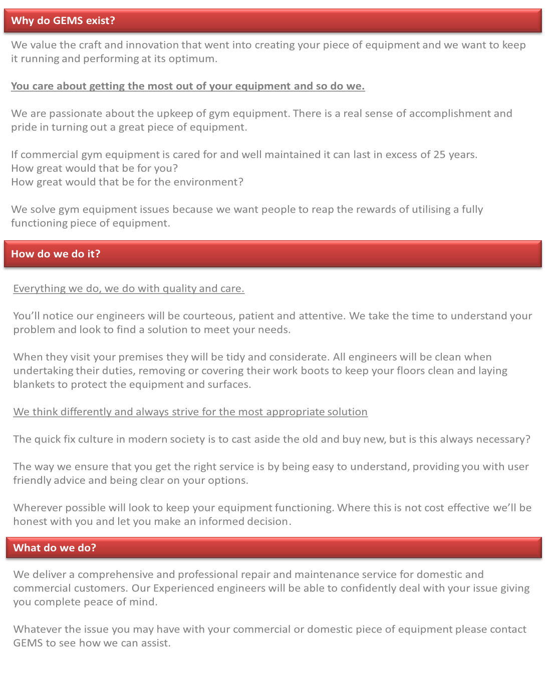 You Can Rely On GMS For Complete Professional Reliability From The Repair Of A Single Item Of Gym/Fitness Equipment To The Ongoing Maintenance Of Multiple Gym/Fitness Items.